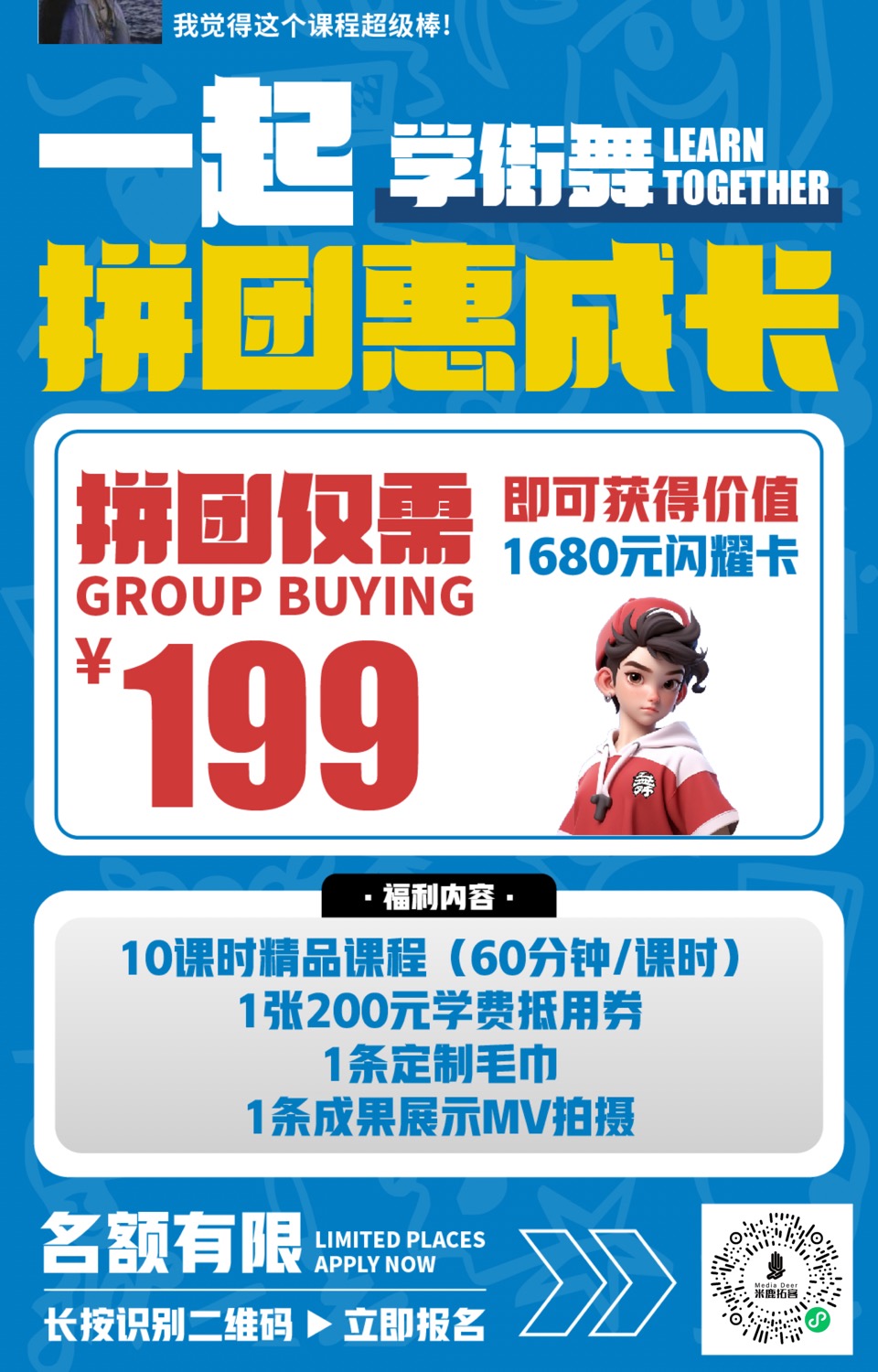 有没有要学街舞的,我们这来个人拼团就三个人了,199有14课时