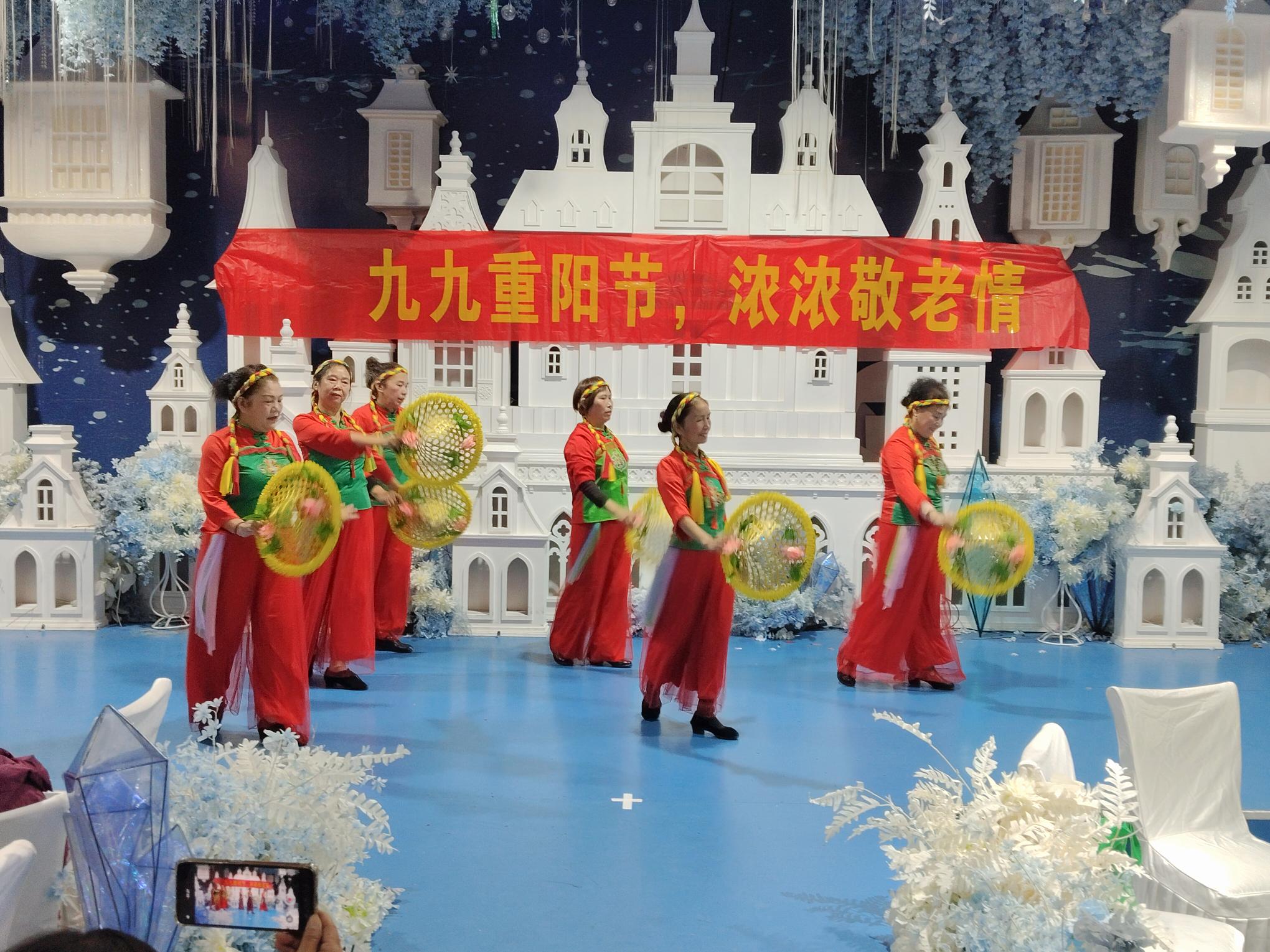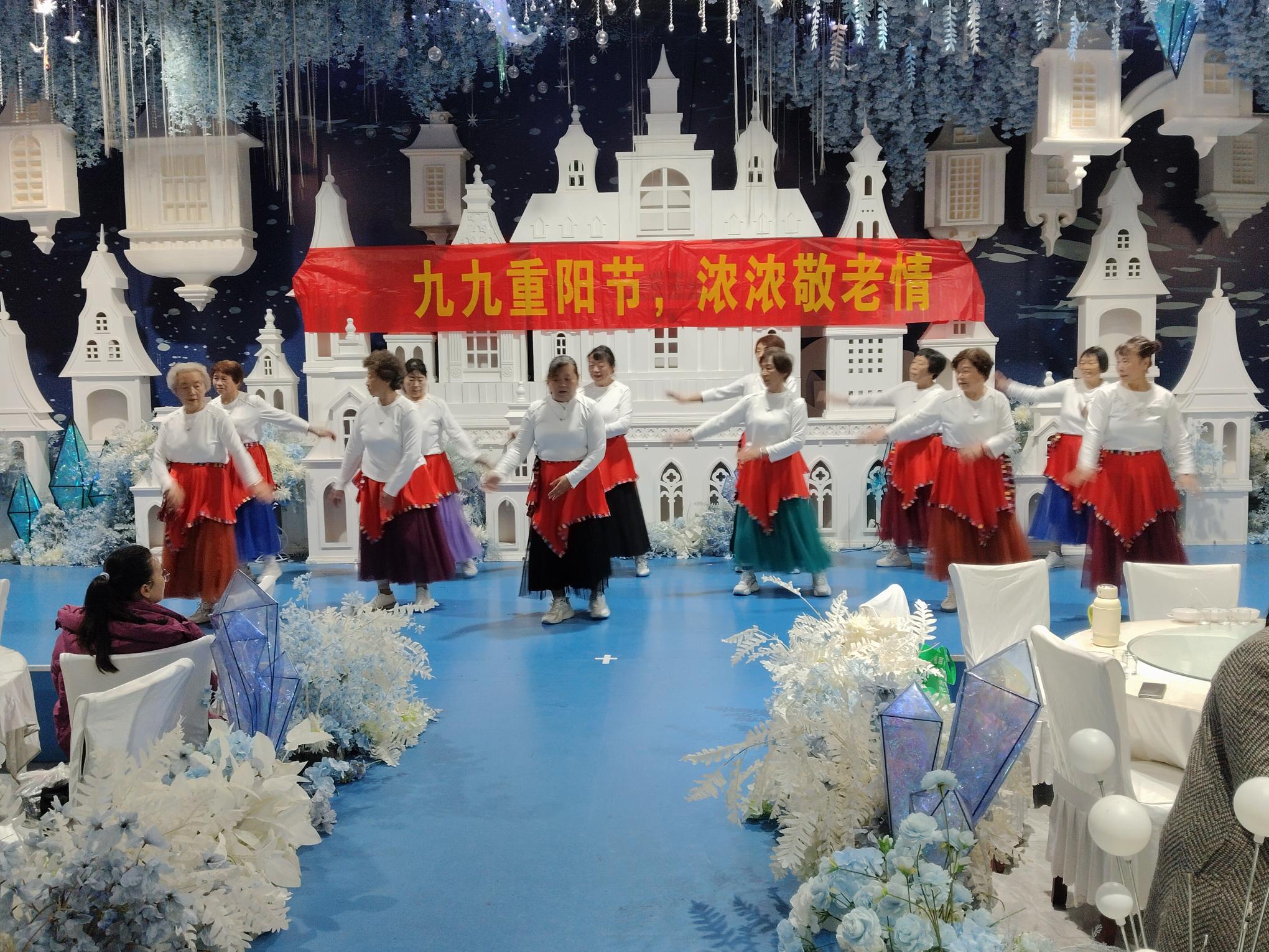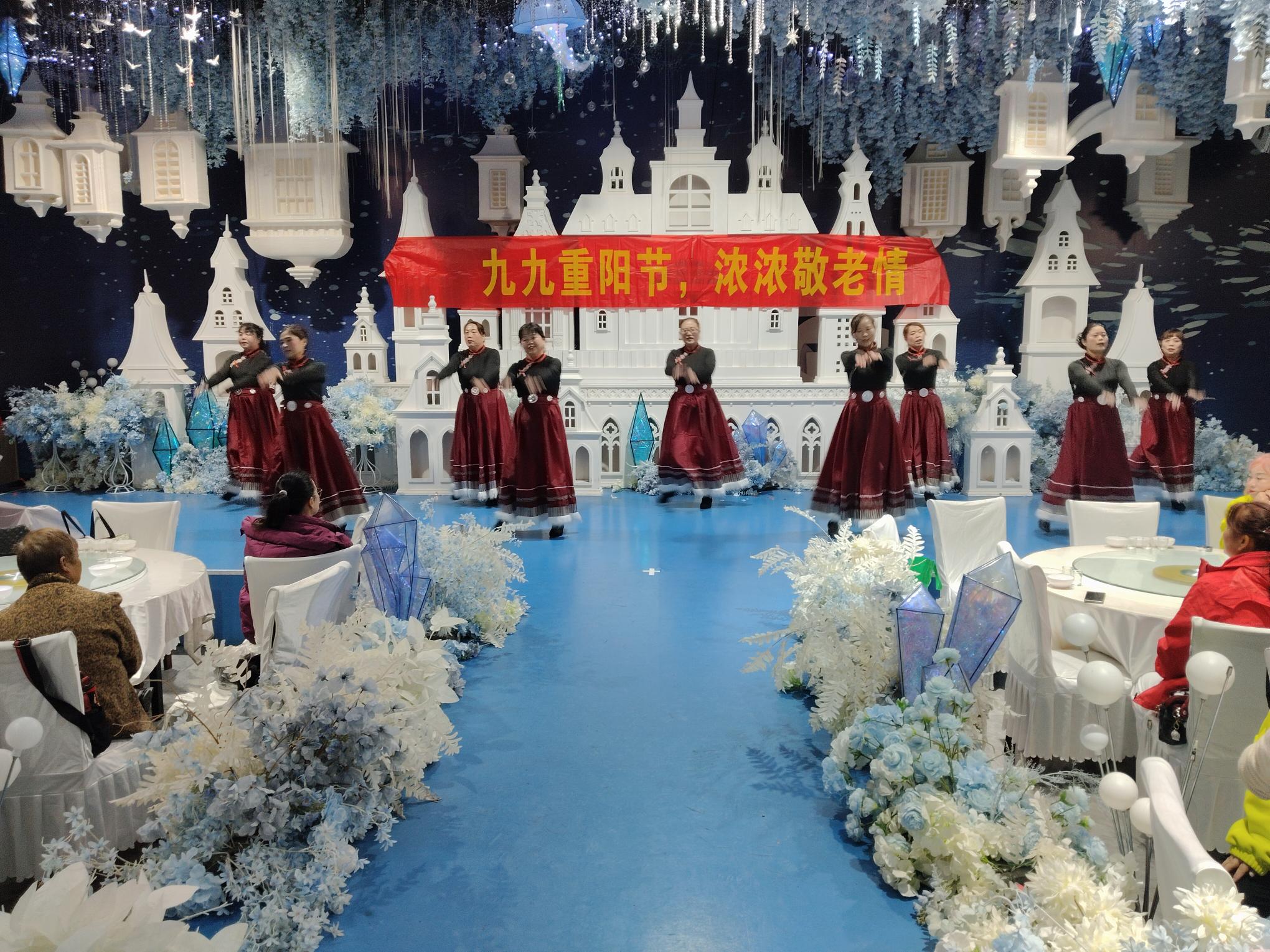 在餐厅现场看到,该村还全村老人们邀请了武都各演出团队,在餐厅舞台上为全村老人们演出了精彩的文艺节目,有旗袍秀,魔术,各种舞蹈,健身体操等节目,演出持续两个半小时,演出结束后全体演职人员合影留念。