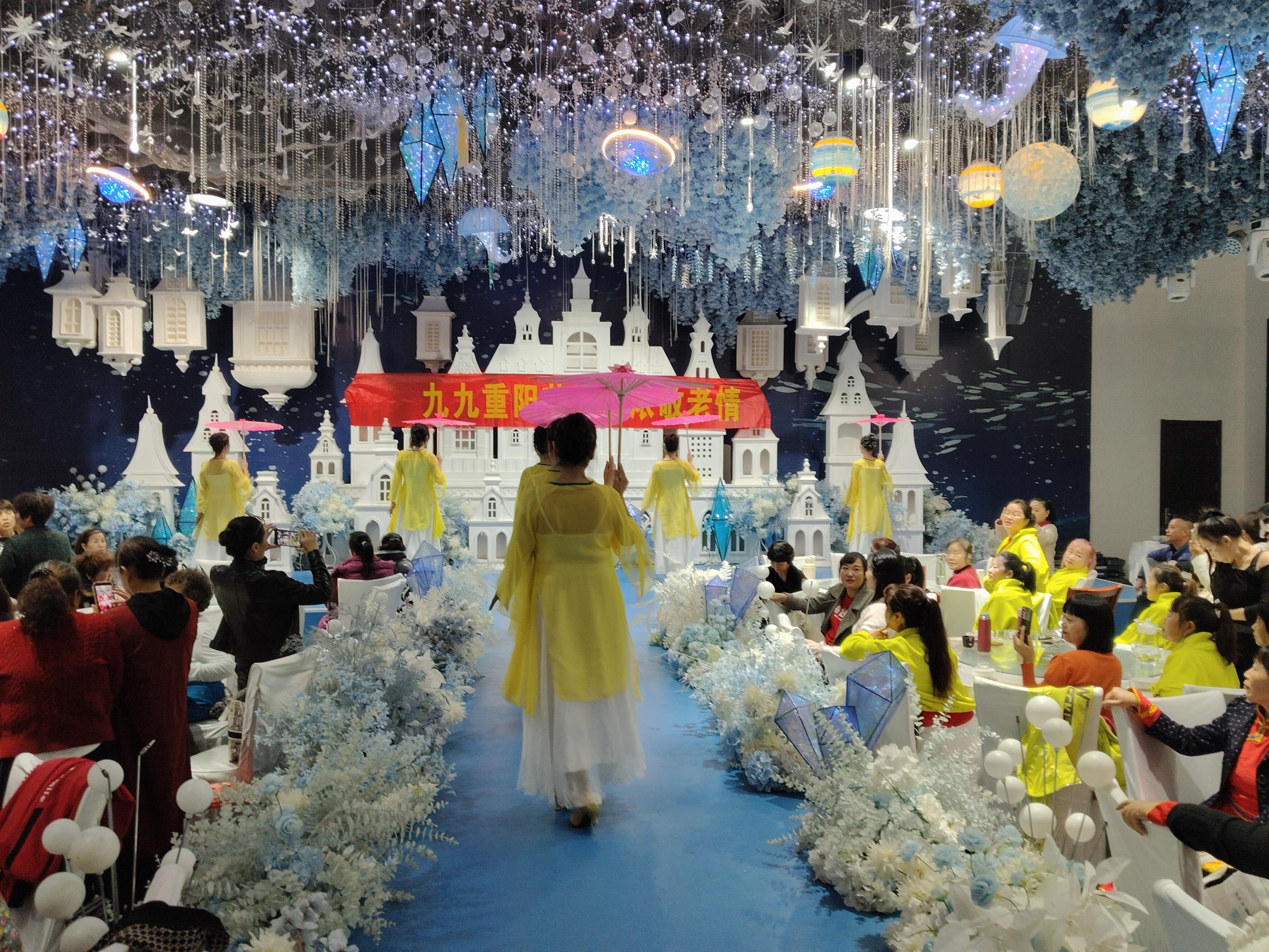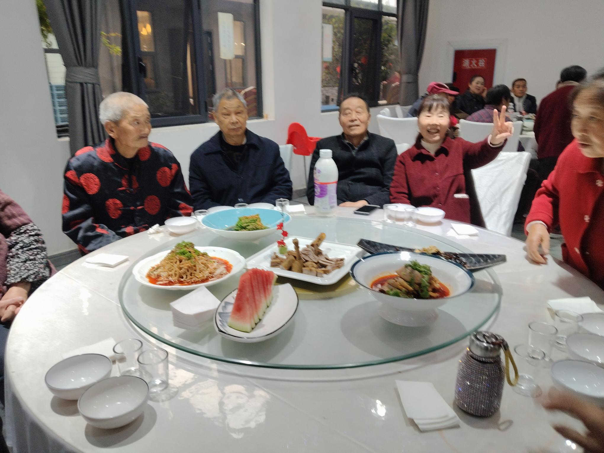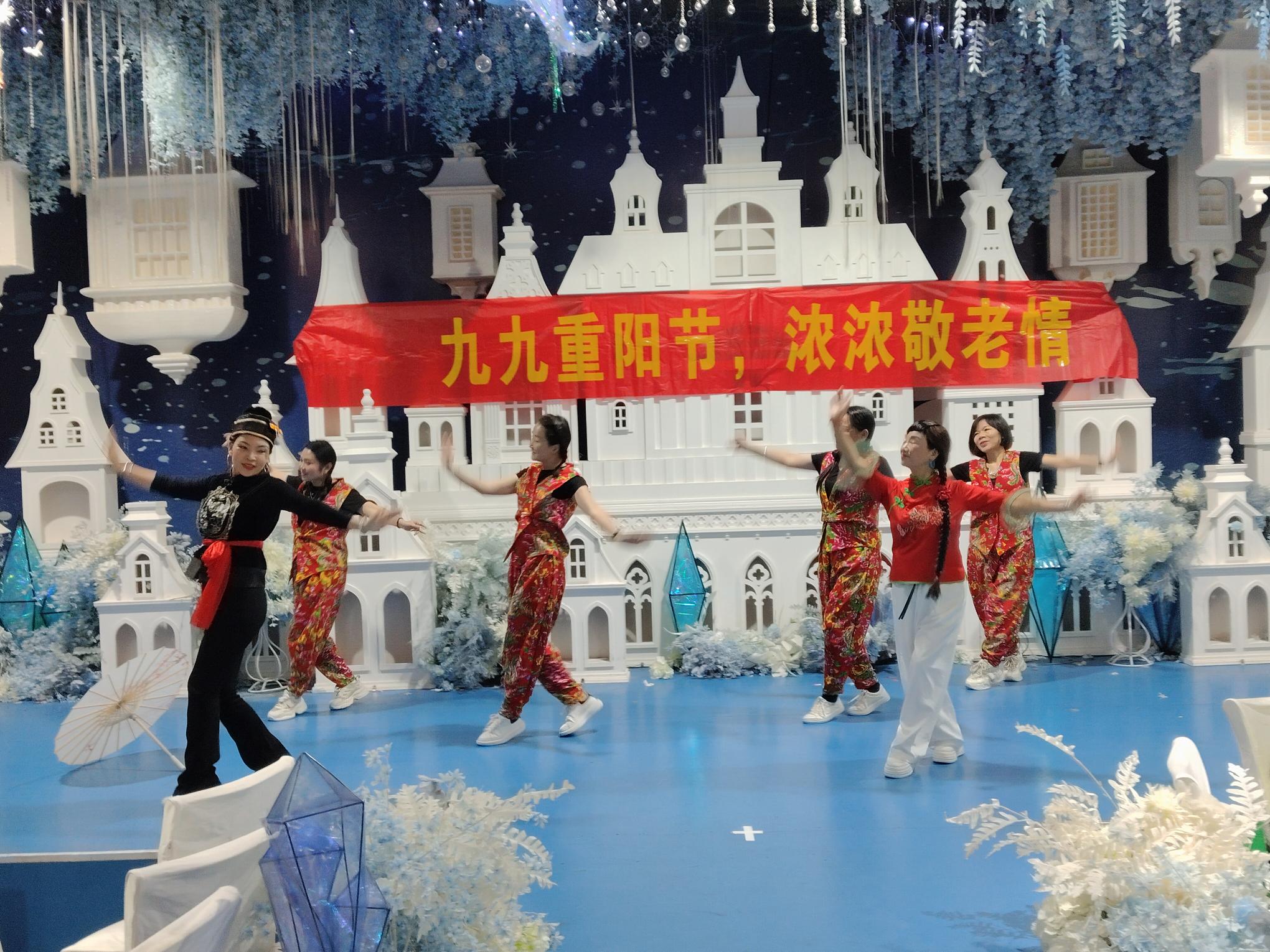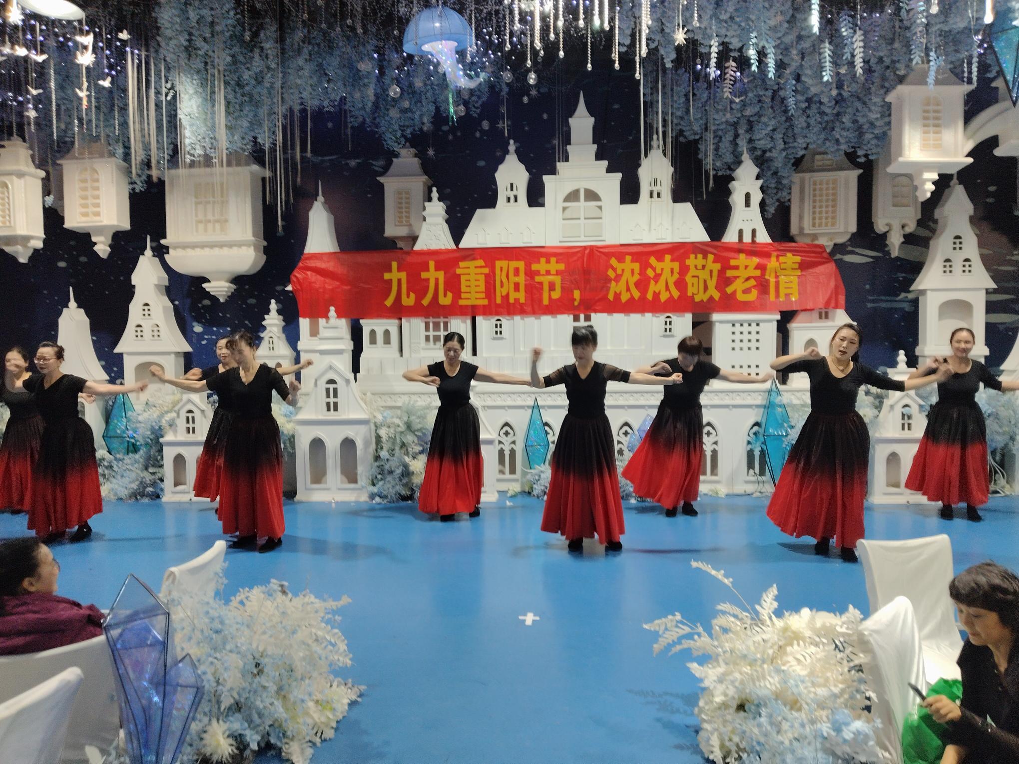 在餐厅现场看到,该村还全村老人们邀请了武都各演出团队,在餐厅舞台上为全村老人们演出了精彩的文艺节目,有旗袍秀,魔术,各种舞蹈,健身体操等节目,演出持续两个半小时,演出结束后全体演职人员合影留念。