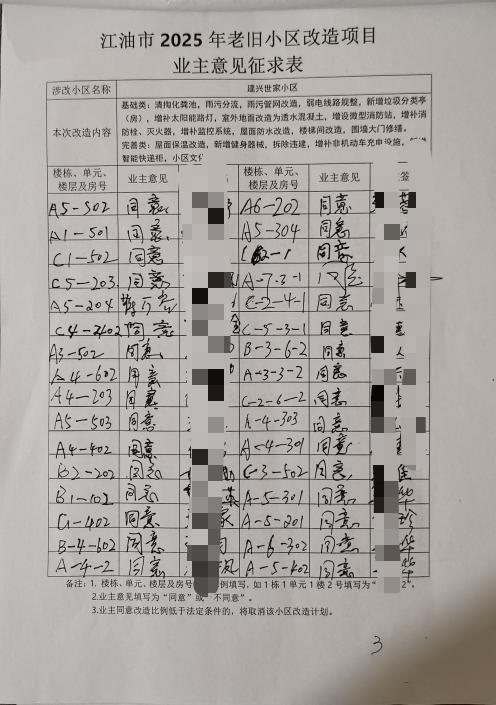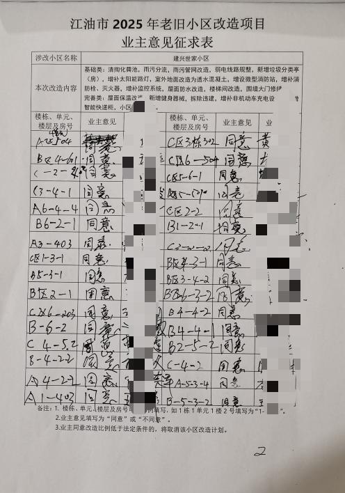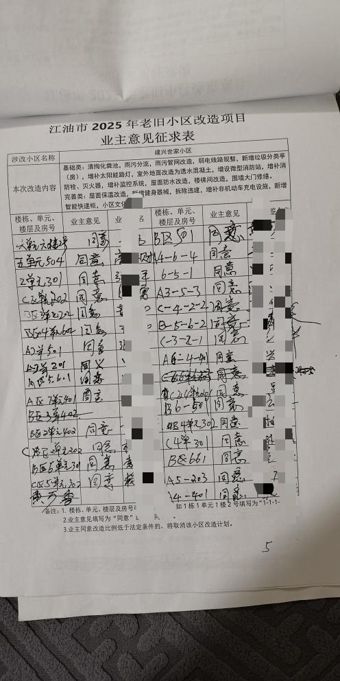 2025年,我局已按照住建部和四川省住建厅要求,对全市2005年底前建成小区的数量及居民改造意见进行全面排查,拟计划将建兴世家小区纳入2026年老旧小区改造项目,待上级通知申报2026年度改造计划任务且获得上级批准后,方可推进建兴世家小区的老旧小区改造施工。