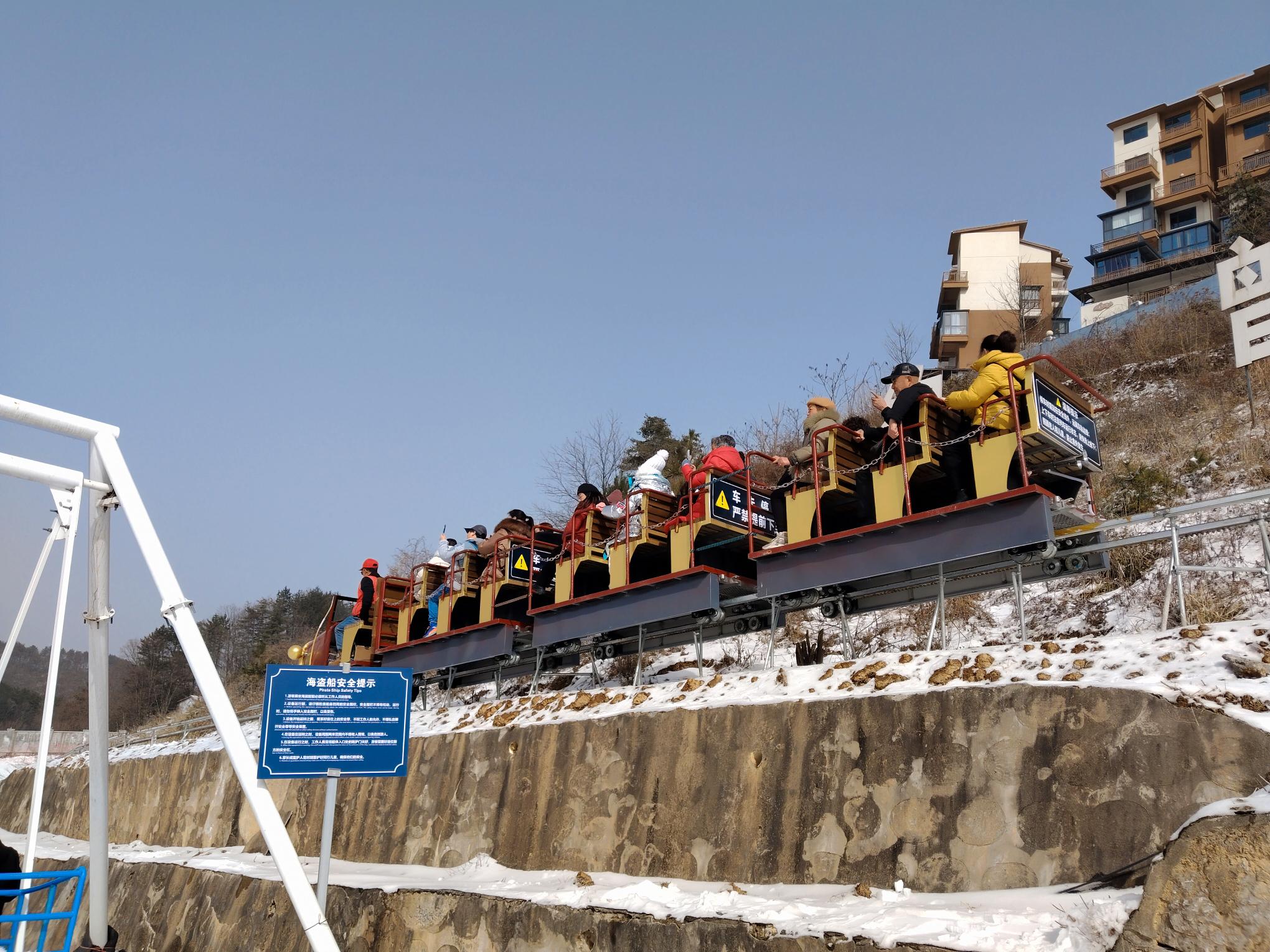 在景区看到,整个景区白茫茫全景积雪,雪场部份儿童游乐设施免费,景区还设有观光体验游客免费乘坐小火车,游客如要进场滑雪每位188元,跟团每位138元,