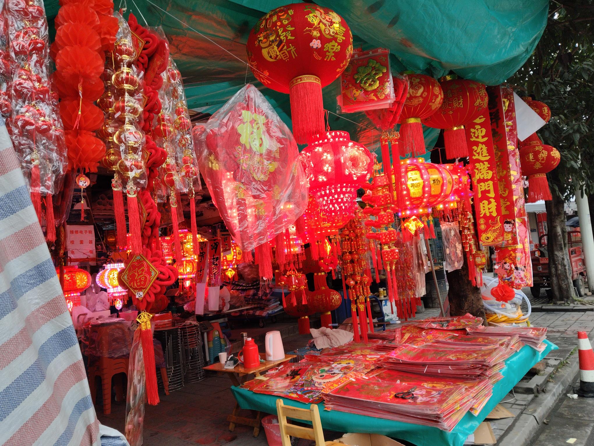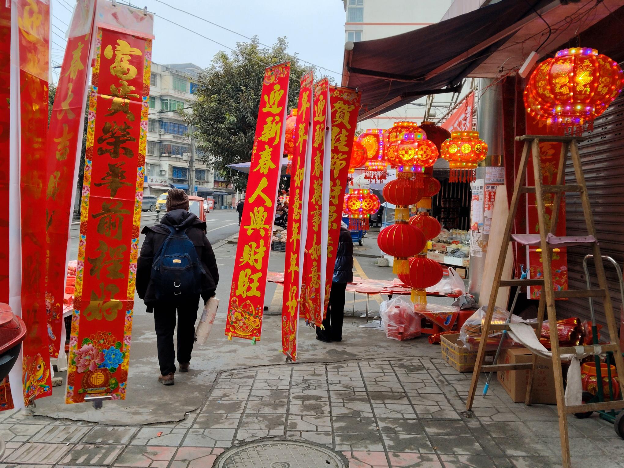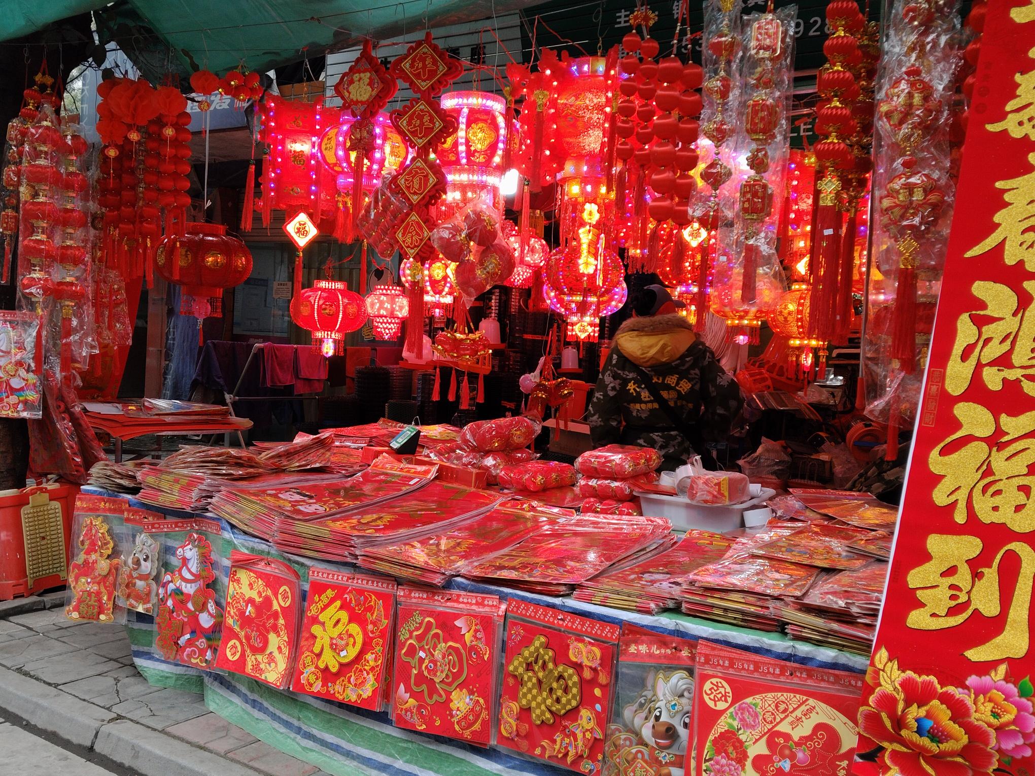 距离春节越来越近了,今天中午来到武都团山路看到,团山路公路两旁的商店成为了年货一条街,有各种旋转灯笼,对联,门神,中国结等年货。