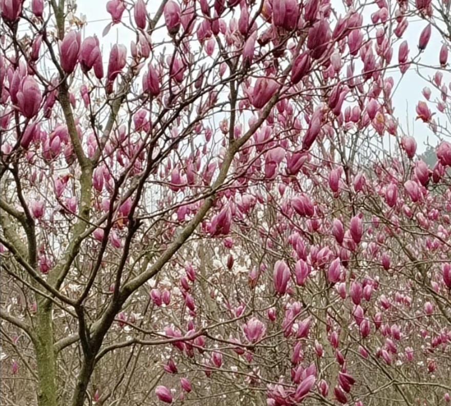 江油大康陈塘关村(原水口庙村)百草园上千株紫玉兰盛开绽放,引八方游客踏春!