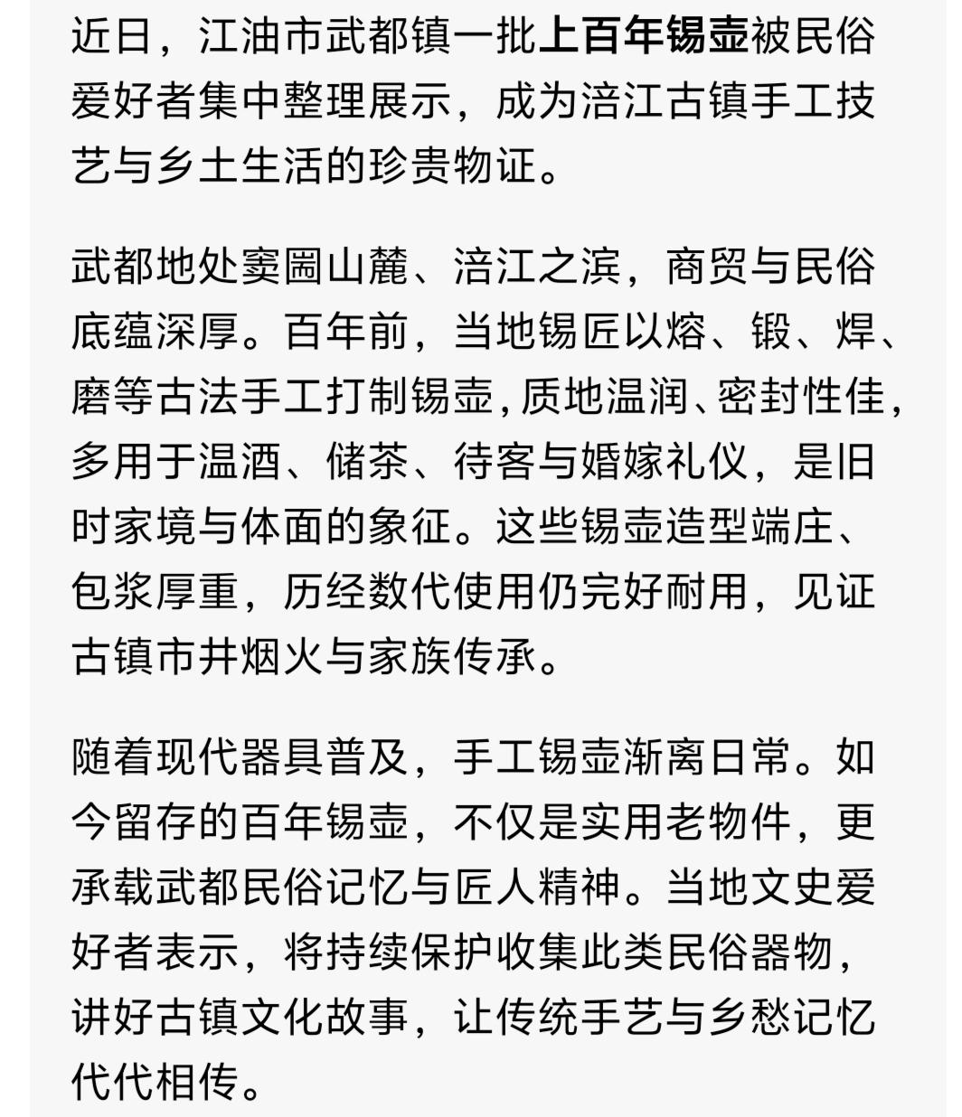 江油聊吧   江油武都百年锡壶:古镇匠心藏岁月民俗器物续乡愁!