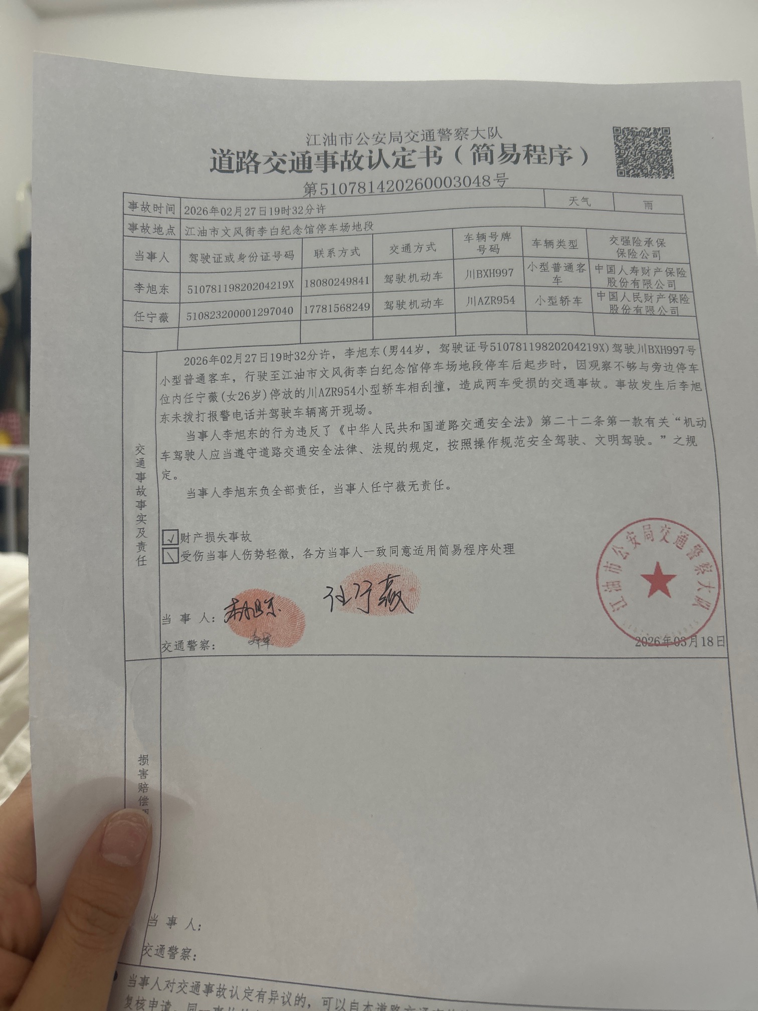 江油聊吧   这都不算肇事逃逸:车停在停车场被撞了,两天后才发现!