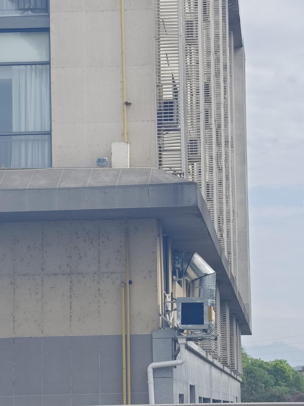 问问对面酒店这样的油烟管道合规吗?一到饭点油烟很呛人