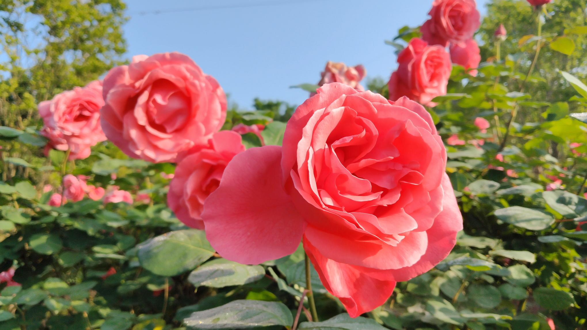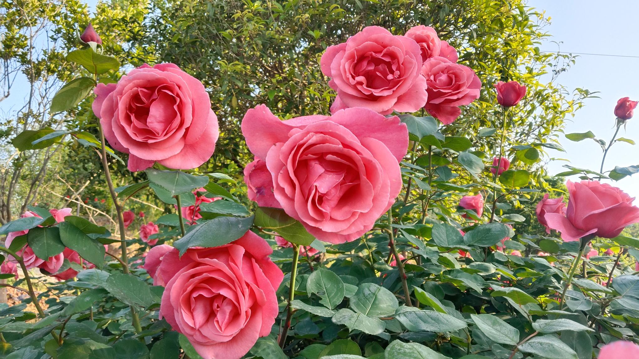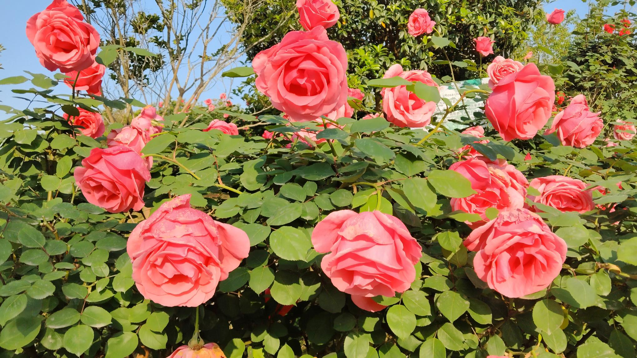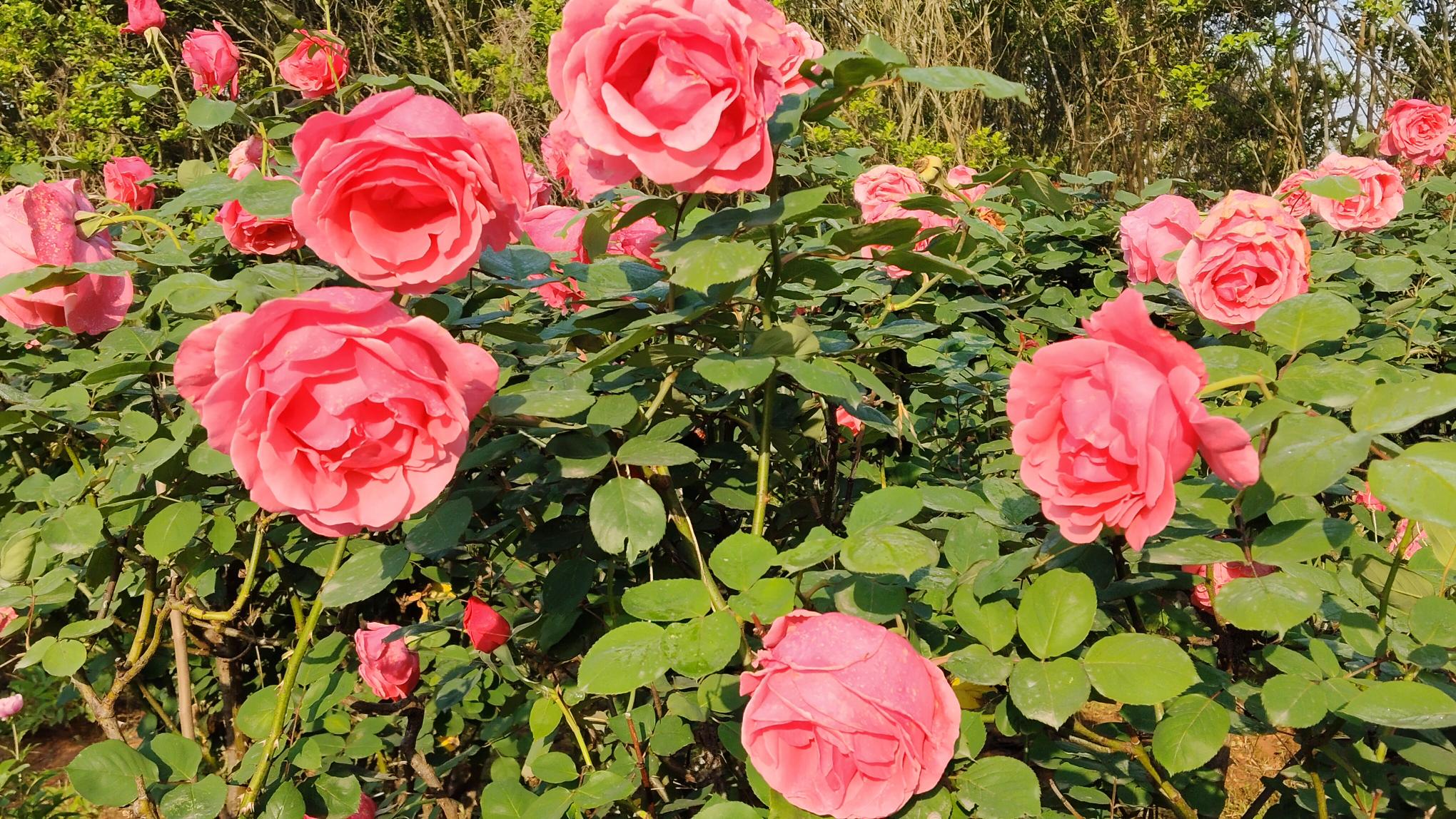 今天早晨来到大康镇陈塘关村(原水口庙村五组)百草园看到,该园上百亩月季花盛开绽放开出鲜艳的花朵。