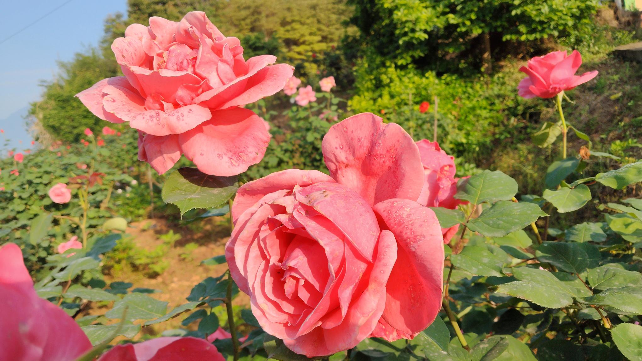 江油聊吧   大康陈塘关村(原水口庙村)百草园上百亩月季花盛开绽放游客可免费赏花!